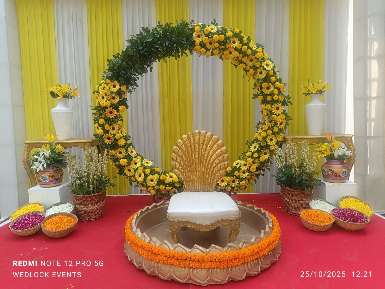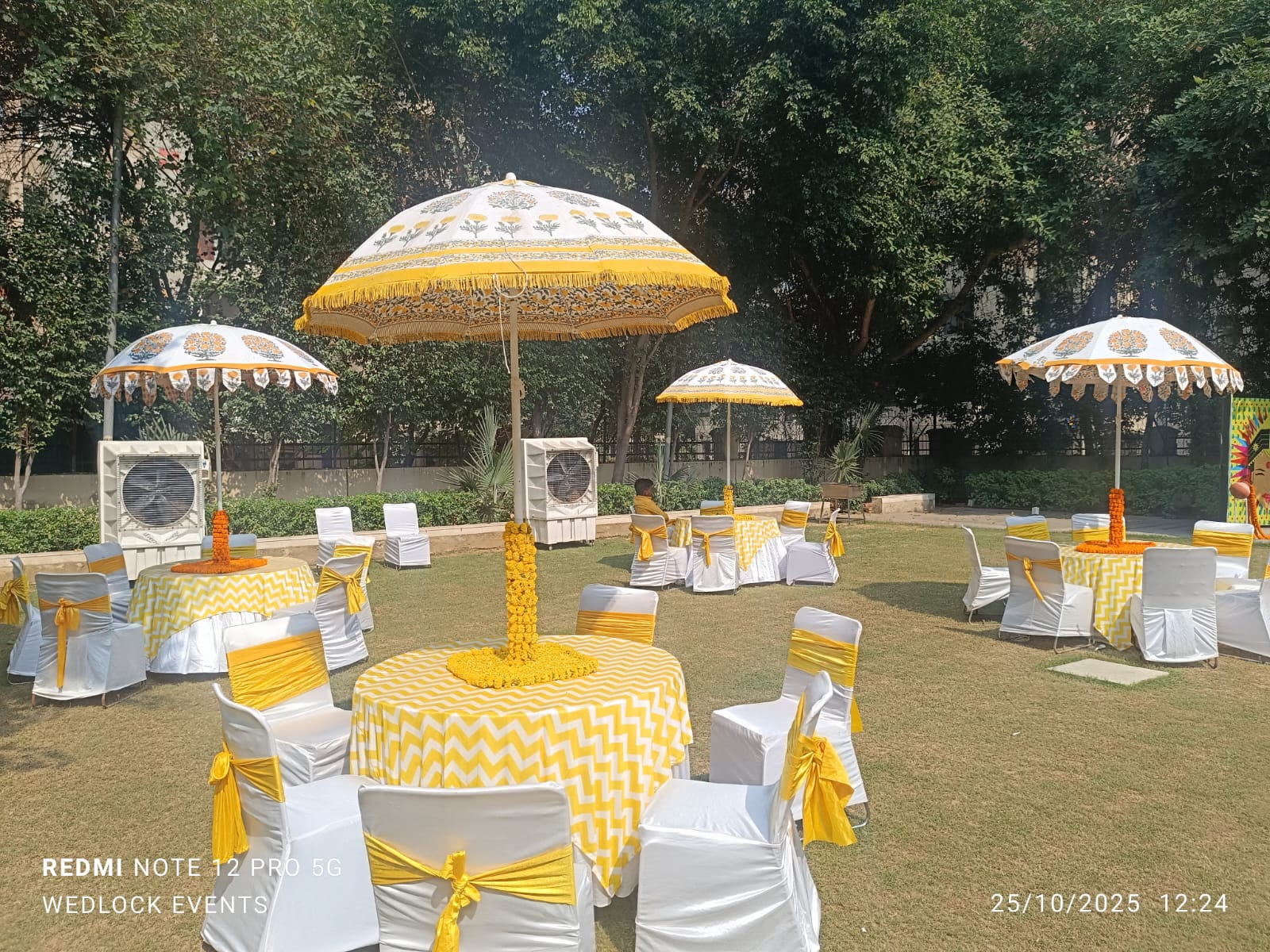 At Wedlock Events Gurugram, we bring your celebrations to life with our wide range of premium event services. We specialize in flower decoration, tent decoration, balloon decoration, haldi and mehendi decoration, and stage decoration that add elegance and charm to every occasion. Our catering service ensures delightful food experiences, while our DJ sound and light decoration create the perfect ambience for unforgettable moments. From intimate gatherings to grand celebrations, we handle all types of events with creativity, precision, and care. With Wedlock Events Gurugram, every detail is managed seamlessly, making your special day truly memorable.